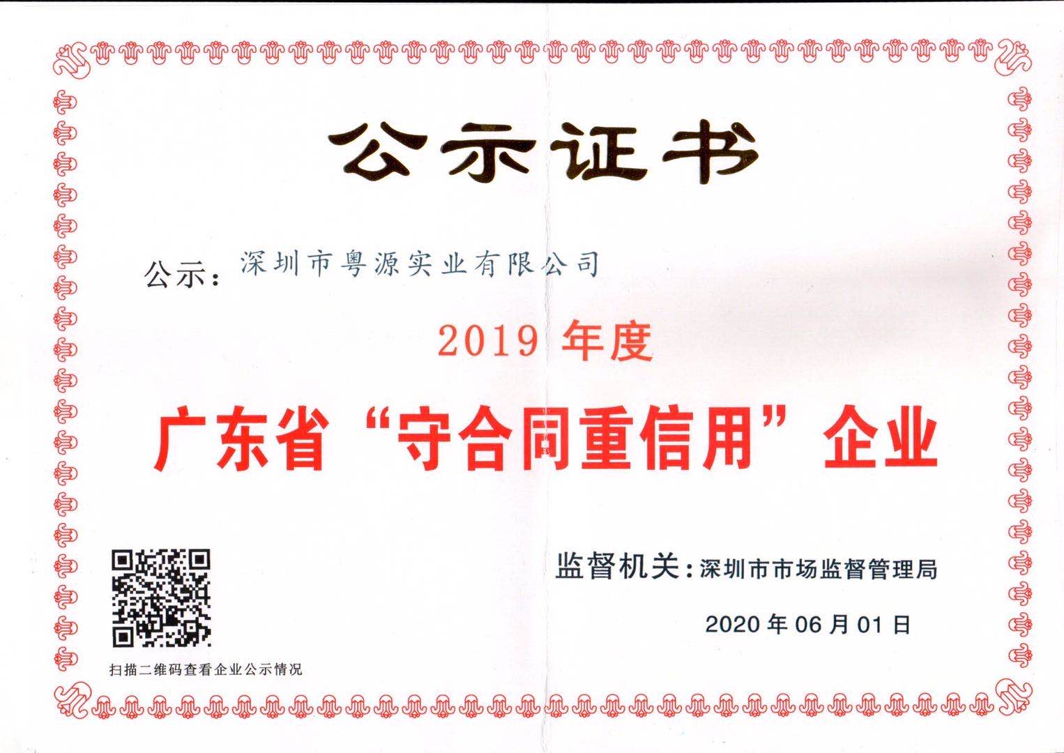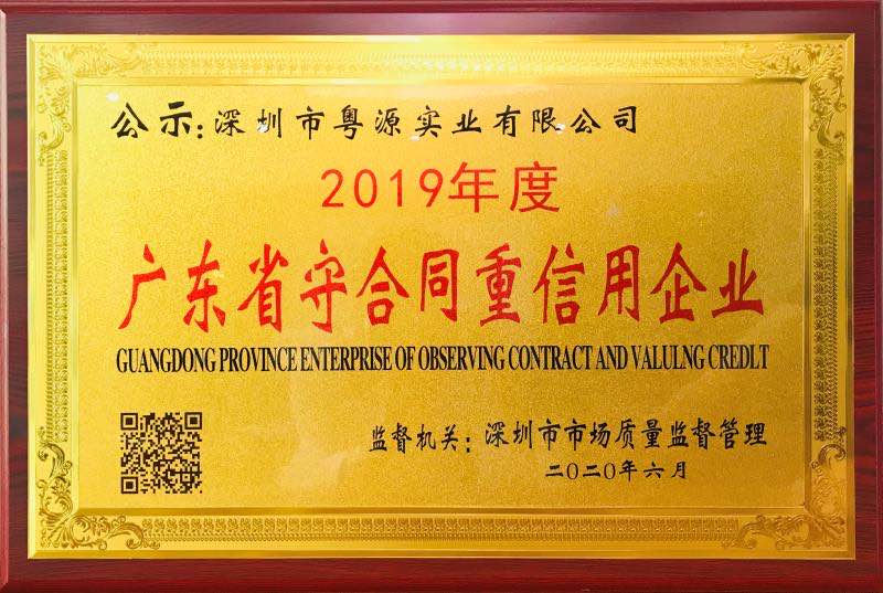 2020年7月,深圳市市場(chǎng)監(jiān)督管理局正式公示2019年度廣東省守合同重信用企業(yè)名單,深圳市粵源實(shí)業(yè)有限公司再度榜上有名,這是粵源實(shí)業(yè)自2017年以來連續(xù)三年獲得此項(xiàng)殊榮!