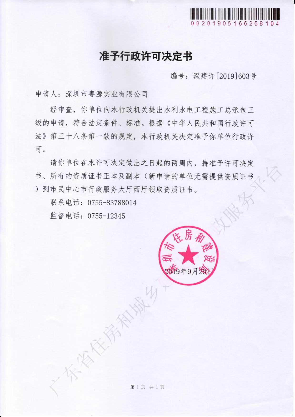 - 恭喜粵源實(shí)業(yè)取得“水利水電工程施工總承包叁級(jí)”資質(zhì)